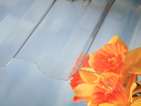 MARLON CS 2UV - trapézové desky z polykarbonátu. Desky mají sílu 0,8 mm a jsou úplně hladké průhledné bez povrchové krupičky. Dodáváme v čiré nebo v průhledné kouřově hnědé barvě.